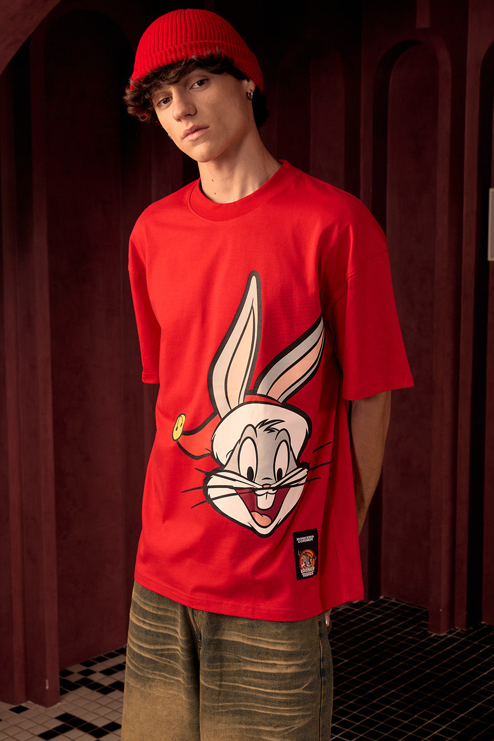 Ho Ho Ho! Get ready for some Looney Tunes holiday cheer with the Bugs Bunny Xmas Oversized T-shirt for men. Crafted from soft 100% cotton, this oversized tee for men offers ultimate comfort and a relaxed fit. The festive red color adds a touch of holiday spirit, while the playful Bugs Bunny Christmas design is sure to bring smiles to all. Perfect for holiday gatherings, movie nights, or simply lounging around, this tee is a must-have for any Looney Tunes fan. This Sweatshirt for men is officially licensed Looney Tunes merchandise, ensuring authentic designs and premium quality.