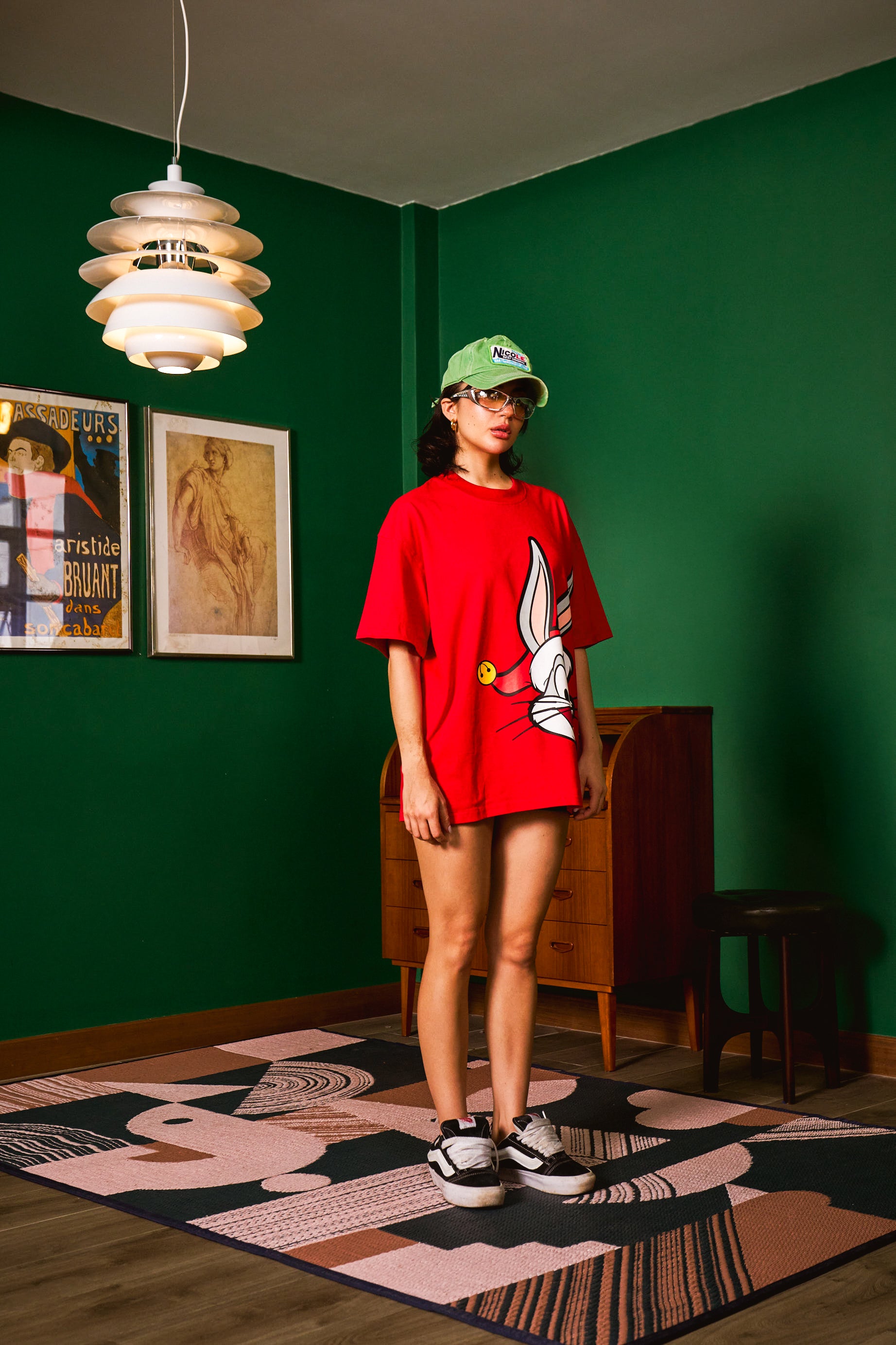 Ho Ho Ho! Get ready for some Looney Tunes holiday cheer with the Bugs Bunny Xmas Oversized T-shirt for women. Crafted from soft 100% cotton, this oversized tee for women offers ultimate comfort and a relaxed fit. The festive red color adds a touch of holiday spirit, while the playful Bugs Bunny Christmas design is sure to bring smiles to all. Perfect for holiday gatherings, movie nights, or simply lounging around, this tee is a must-have for any Looney Tunes fan. This Sweatshirt for women is officially licensed Looney Tunes merchandise, ensuring authentic designs and premium quality.