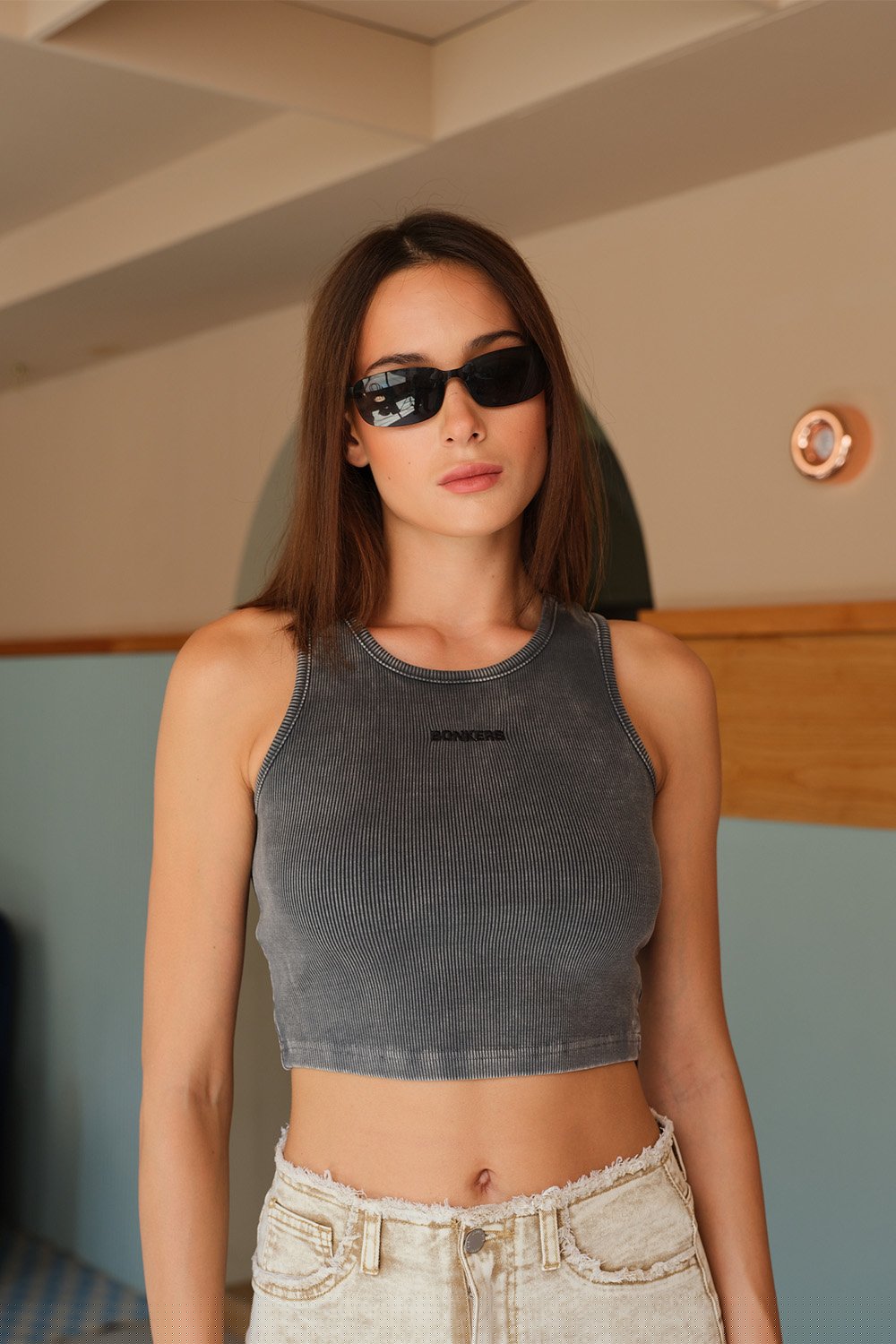 Inject a touch of effortless cool into your everyday wardrobe with the Bonkers Corner Grey Faded Signature Tank. This essential women's tank features a soft, faded grey color that adds a touch of lived-in style to any outfit. Crafted from a comfortable 95% cotton and 5% spandex blend, it offers a flattering regular fit that moves with you throughout the day. The minimal branding lets the classic silhouette shine, making it a versatile piece for endless outfit combinations. Dress it up or down with ease – layer it under a blazer for a polished look or throw it on with jeans for a casual vibe.