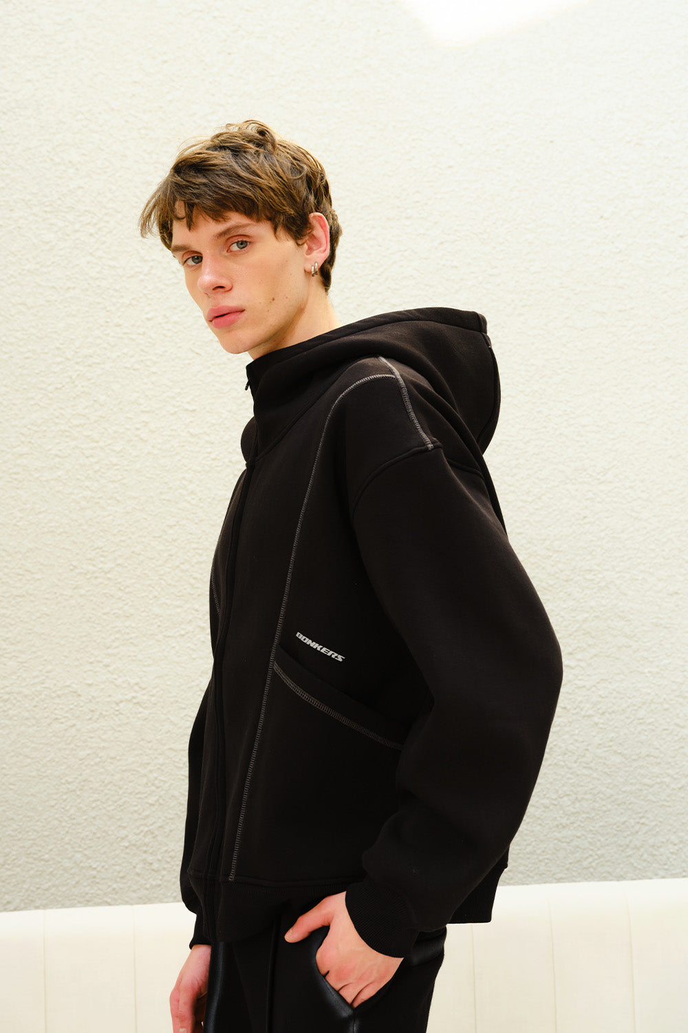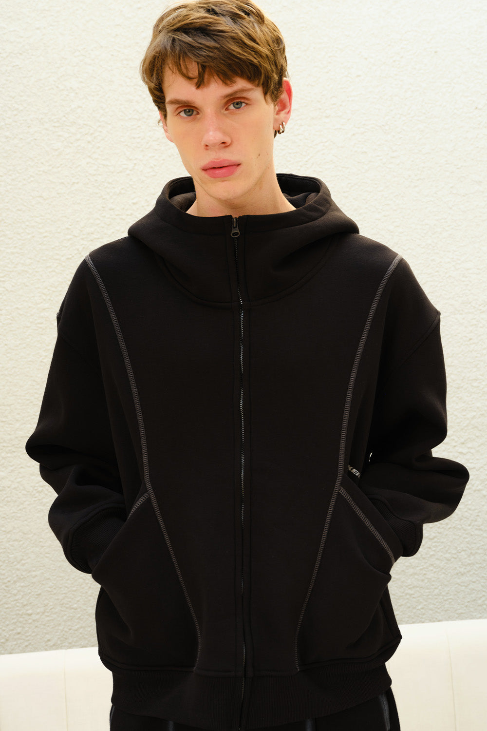 Black Contour Zip Hoodie
