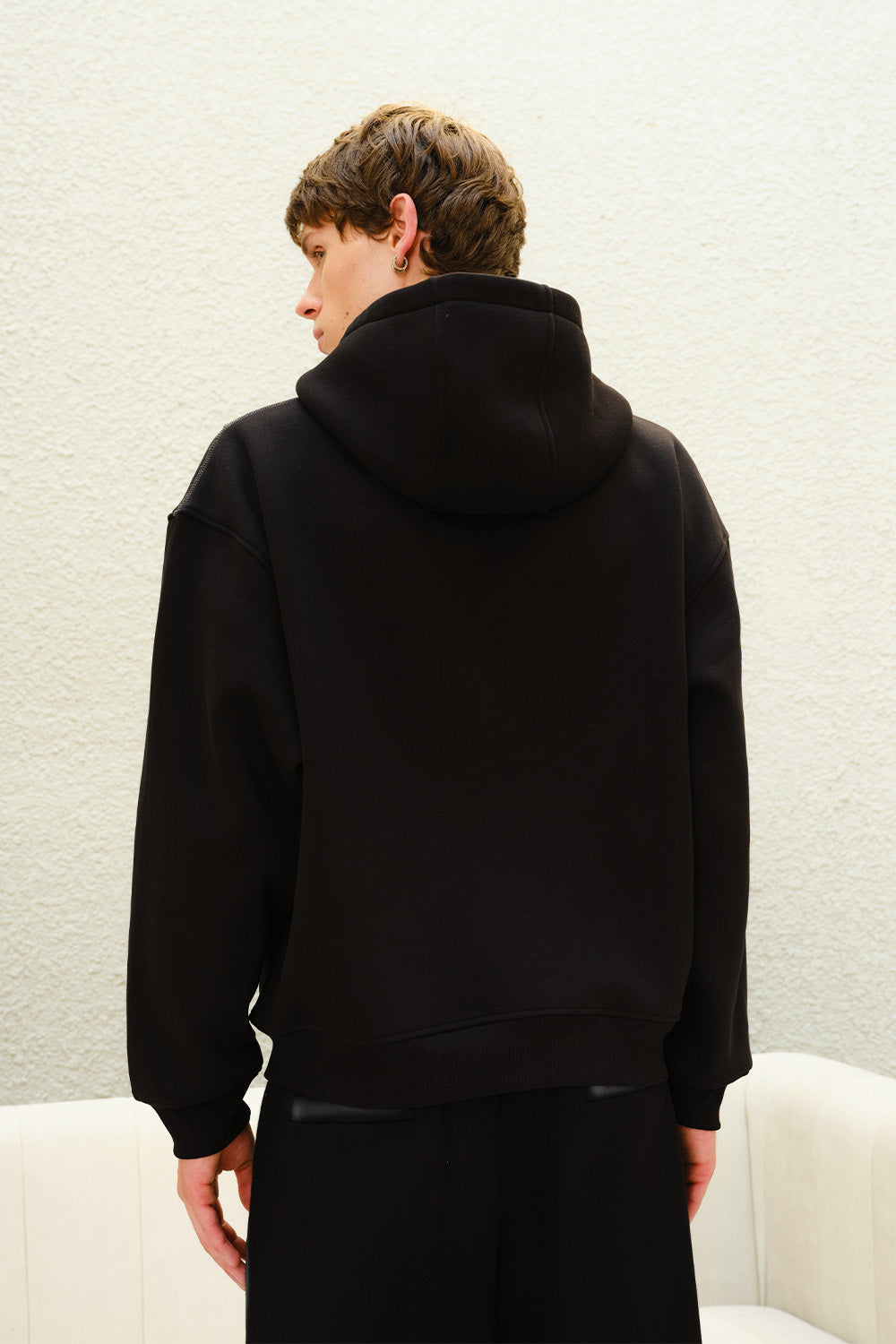 The Black Contour Zip Hoodie for men combines comfort, style, and practical everyday wear. Made from a premium blend of 60% cotton and 40% polyester, this hoodie delivers a soft touch while maintaining durability and shape retention. With a 380 GSM fabric weight, it offers balanced warmth and structure, making it suitable for layering over tees, sweatshirts, or casual wear. The timeless black color ensures effortless pairing with joggers, denim, or casual trousers. Designed with a relaxed fit and a functional zip-front closure, it allows adjustable comfort and easy layering. Perfect for lounging, travel, or casual outings, this hoodie provides all-day comfort while maintaining a clean, contemporary style. Durable, versatile, and stylish, the Black Contour Zip Hoodie is an essential addition to any men’s comfort-focused wardrobe.