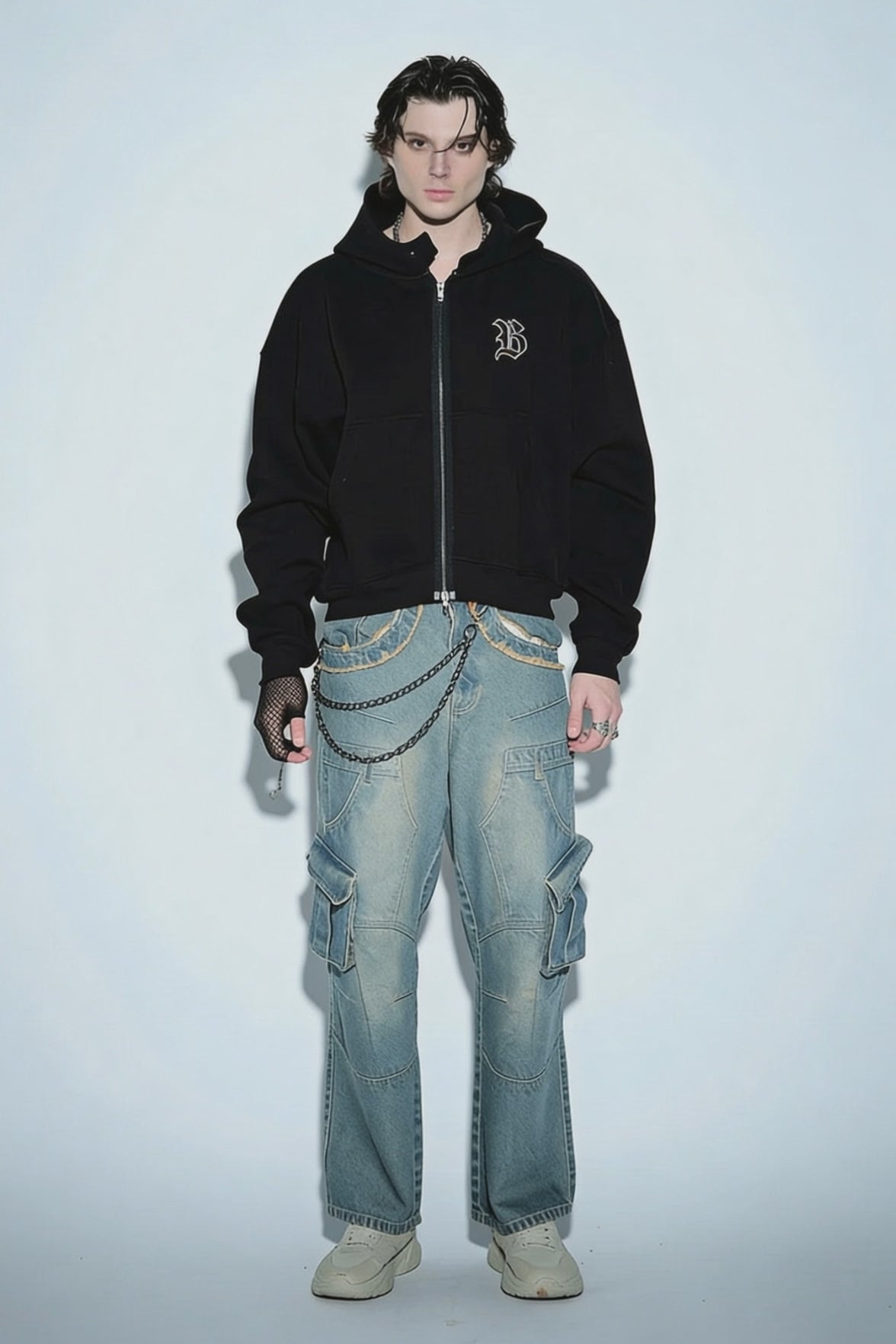 Style a zip-up hoodie under a denim or leather jacket for that extra edge.