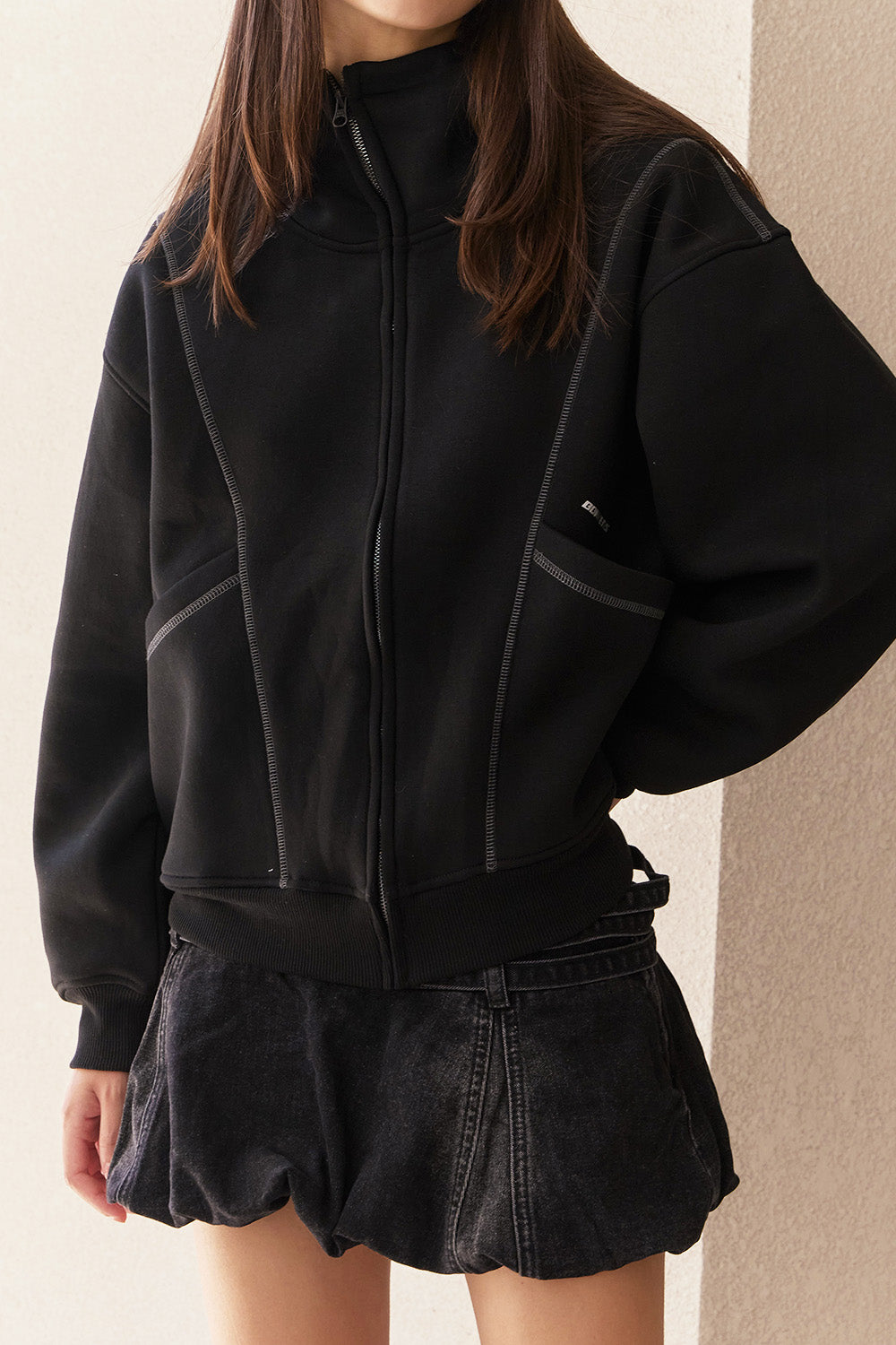 Black Contour Zip Hoodie