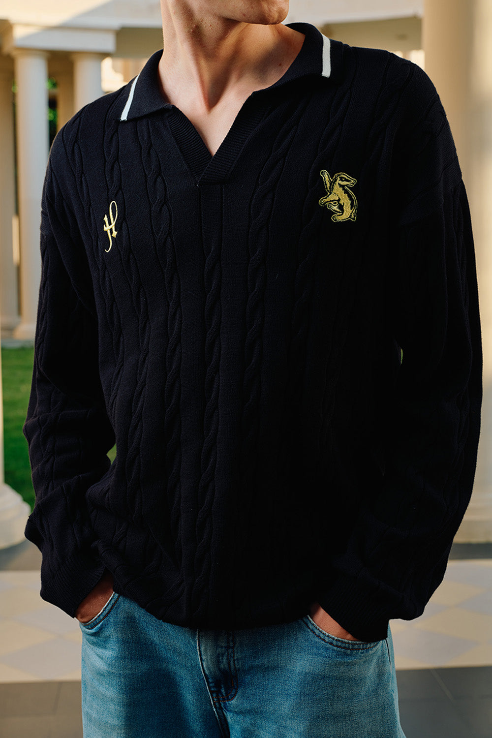 The Hufflepuff Cable Knit Polo delivers quiet confidence through classic knitwear style rather than loud graphics. Made from 100% cotton, the knit feels soft and breathable yet structured enough to hold a clean silhouette. The black shade keeps the look timeless and versatile, while the cable texture adds sophistication and depth to the design. Subtle house inspiration meets polished everyday fashion, making the polo suitable for casual wear, relaxed evenings or smart casual settings. The collar elevates the fit just enough, allowing it to pair easily with trousers, denim or tailored looks. Designed for men who value dependability, comfort and understated detail, this polo reflects the grounded nature of Hufflepuff while remaining stylish and modern. It is the kind of wardrobe staple that works across seasons, delivering premium feel, effortless wearability and simple, confident character every time it is worn.