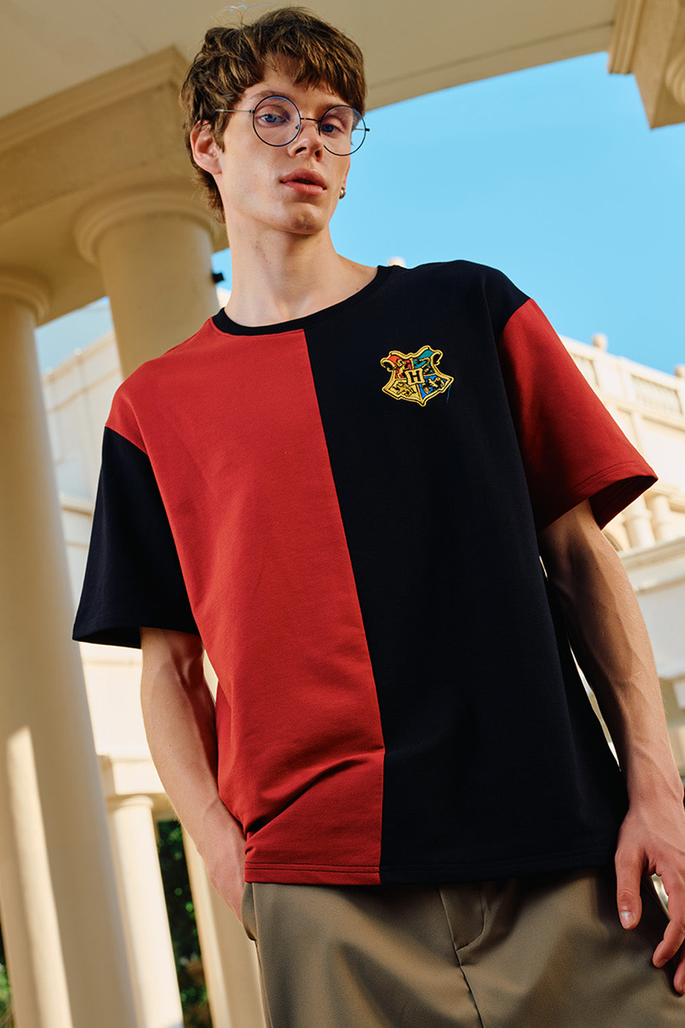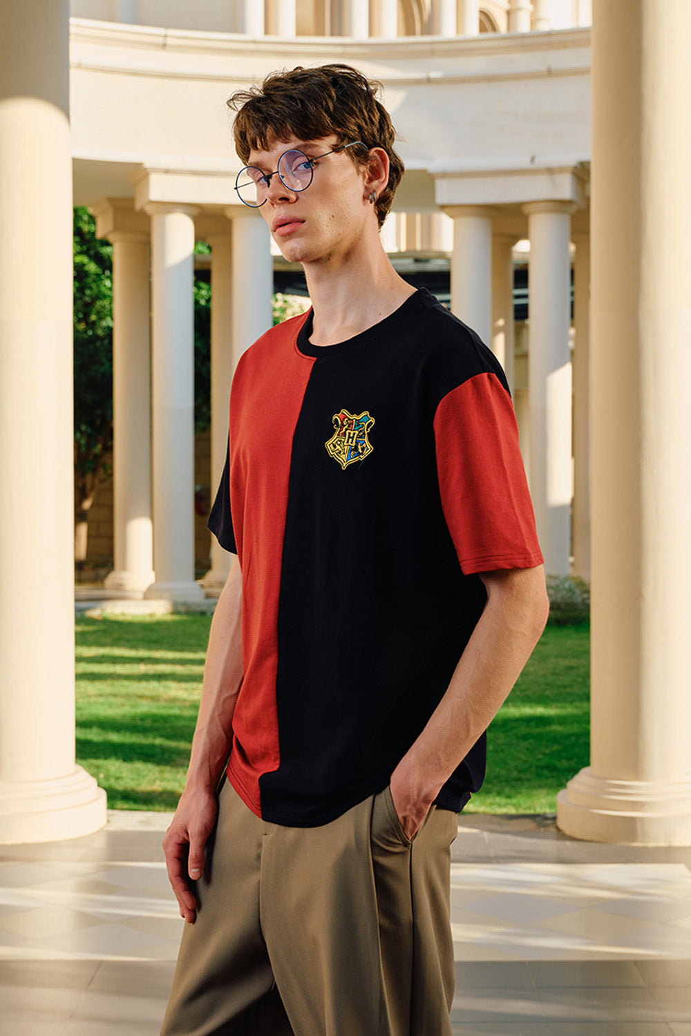 The Hogwarts Varsity Oversized T Shirt blends college inspired style with subtle wizarding world nostalgia. Made from 95% cotton and 5% spandex, the fabric feels soft, breathable and slightly stretchy, making it ideal for everyday wear. The red and blue colour blocking gives the tee a sporty varsity feel, while the oversized silhouette creates a relaxed, laid back fit that drapes naturally. At 240 GSM, the material has a premium mid weight structure that sits comfortably on the body without feeling heavy. Pair it with jeans, cargos or joggers for an easy casual look. Designed for men who enjoy understated fandom fashion, this tee delivers comfort and personality while keeping the styling modern and wearable.