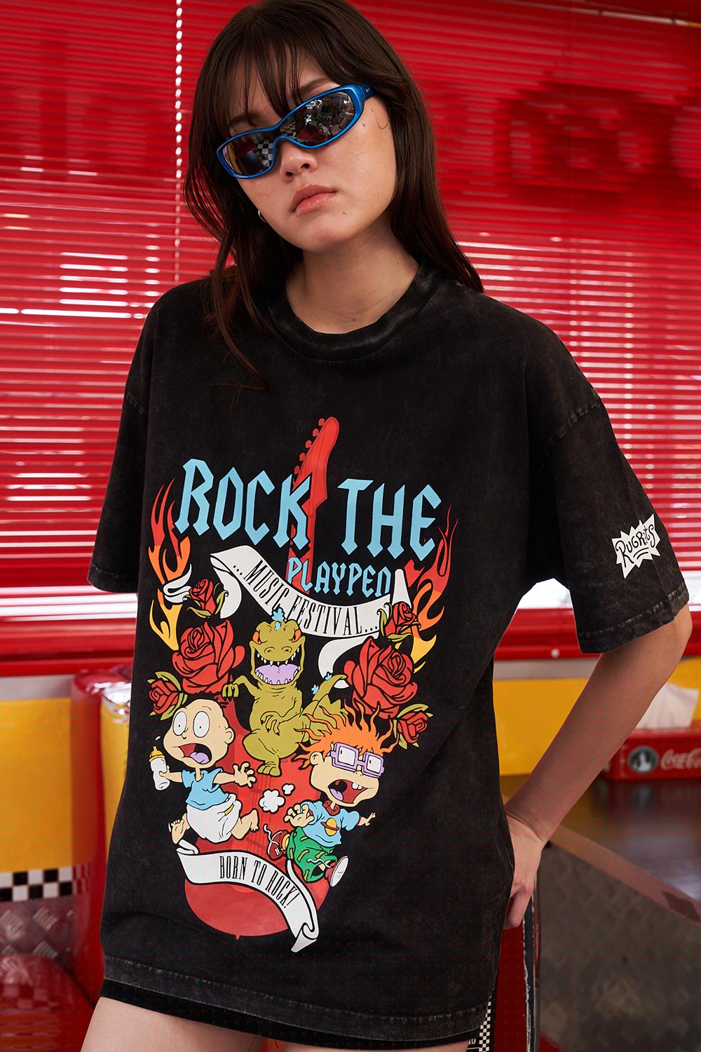 Adventure awaits! Unleash your inner explorer and channel the iconic playpen crew with this comfy Bonkers Corner "Rock the Playpen" oversized tee. Made with soft, breathable fabric, this shirt is perfect for everyday wear, letting you rep your Rugrats love in ultimate comfort. Whether you're conquering your own backyard or just lounging around, this tee is a playful reminder to embrace your adventurous spirit, just like Tommy Pickles and the Rugrats gang.