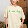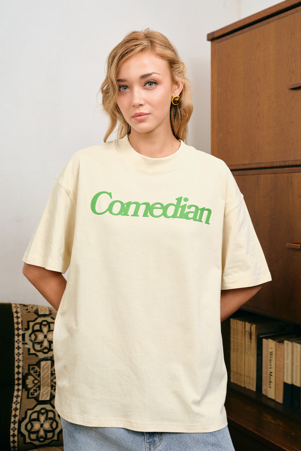 For the girls who can crack jokes without even trying, the Comedian Off White Oversized T shirt captures your vibe. Made from 100 % cotton, it feels soft, breezy and easy to wear, giving the oversized silhouette a relaxed, flattering fall. The off white colour adds a subtle vintage touch that makes the Comedian artwork shine. With a GSM of 210, the fabric stays lightweight and perfect for daily wear. Style it with denim skirts, cargos or wide-leg pants for a cute, effortless look. Ideal for women who bring accidental comedy to every situation, this tee blends humour, comfort and personality in one clean piece.