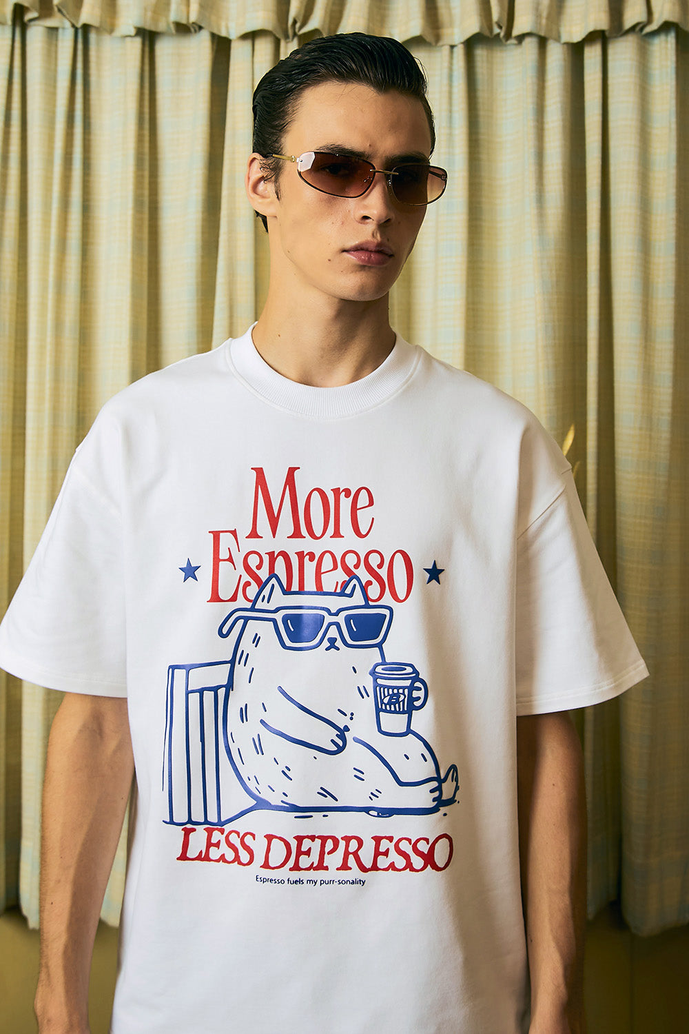 Coffee lovers and chronic overthinkers, this one is basically your personality in a tee. The Espresso Depresso White Oversized T shirt blends humour with clean streetwear style, making it an instant standout. Made from 95 % cotton and 5 % spandex, it feels soft, breathable and has enough stretch to keep the oversized fit comfortable from morning caffeine to midnight spirals. The white colour keeps things fresh while the Espresso Depresso graphic adds the perfect touch of unbothered chaos. With a GSM of 230, the fabric feels premium and drapes smoothly without losing structure. The relaxed silhouette works effortlessly with cargos, denim or joggers. For men who want an oversized T shirt that’s funny, comfy and slightly too relatable, this tee is exactly the vibe. Perfect for coffee runs, lazy days and delulu life updates.