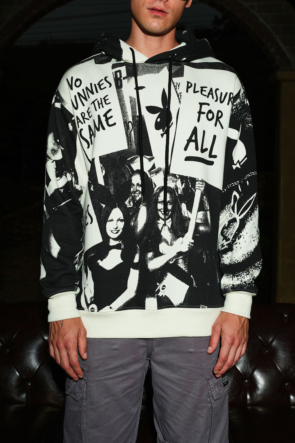 Channel iconic vibes with the Bonkers Corner Playboy Hoodie. This timeless piece features the legendary Playboy bunny logo, making a bold statement for streetwear enthusiasts. The classic hoodie style with a drawstring hood and kangaroo pocket offers ultimate comfort and functionality. Crafted for year-round wear made from 60% cotton and 40% polyester also has fleece-lining for warmth, this hoodie boasts a relaxed fit with a soft, comfortable feel. Style Playboy bunny logo in a timeless way and experience the Bonkers Corner comfort. It's the perfect pick for layering up on chilly days or lounging in style. Available in unisex sizing, this hoodie is a must-have for any wardrobe.