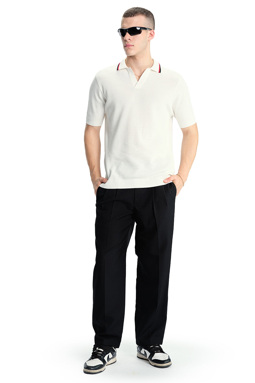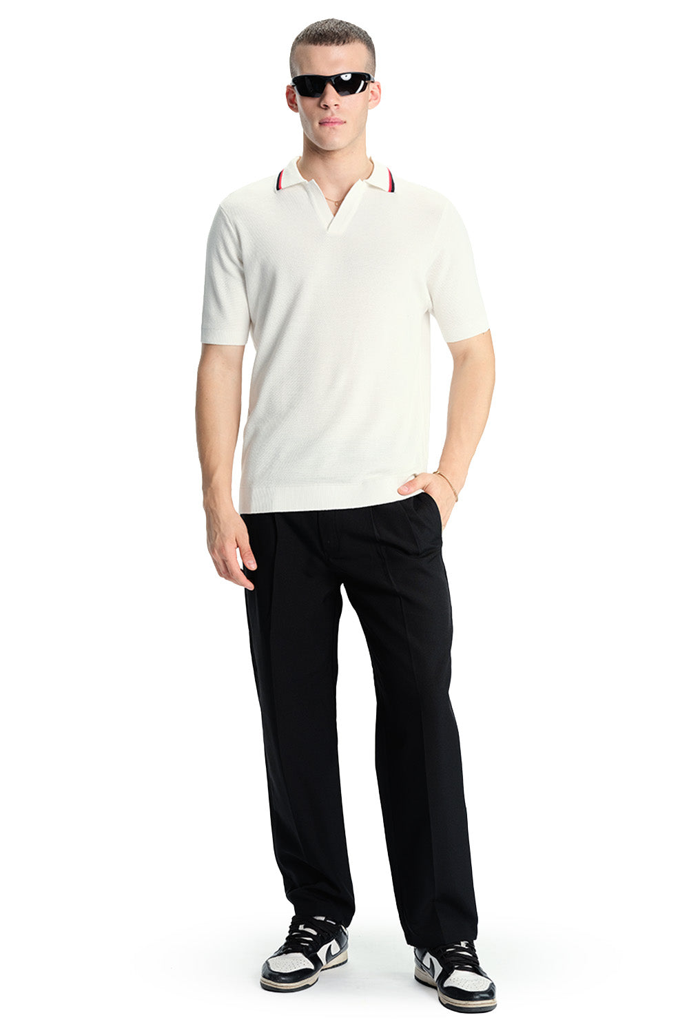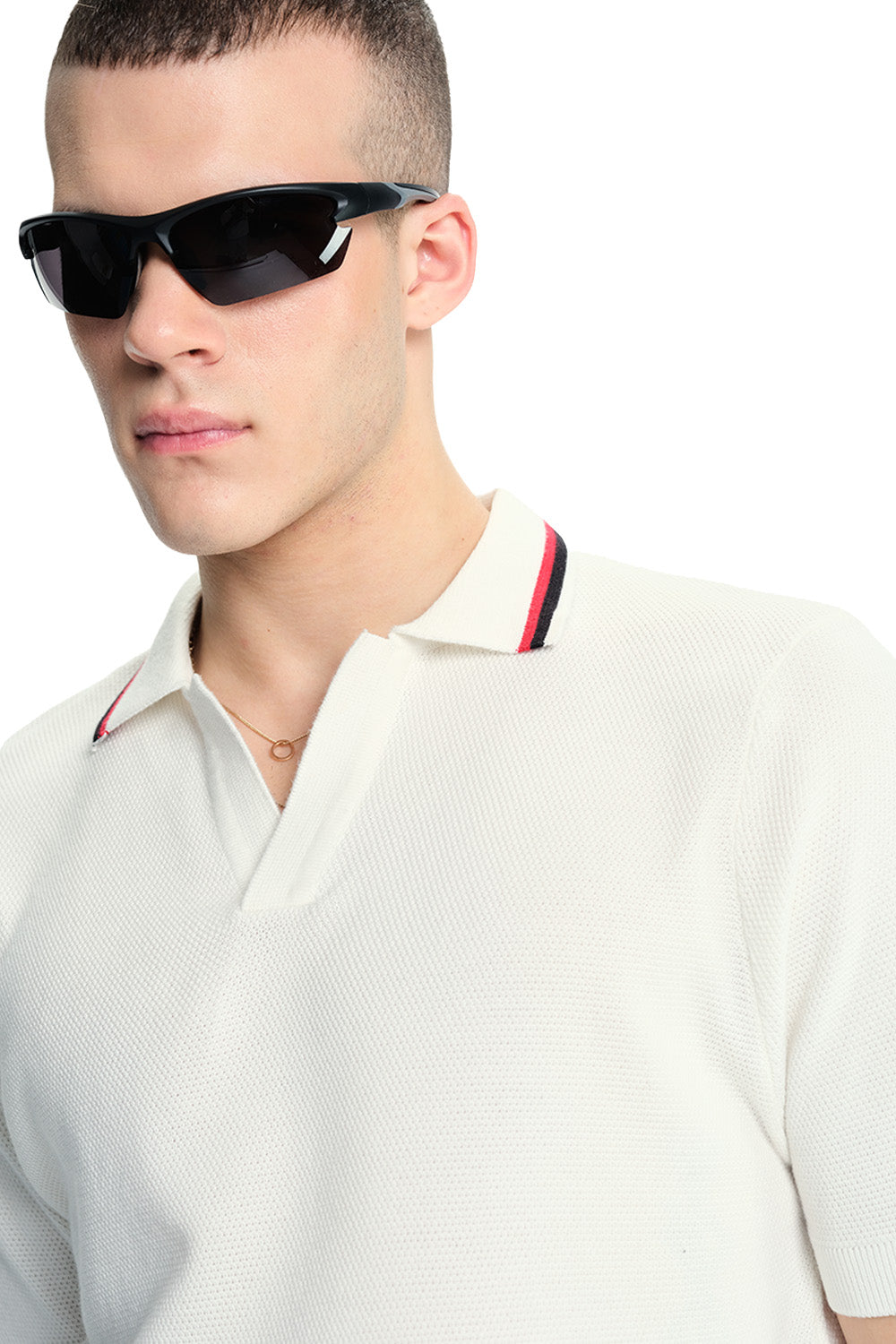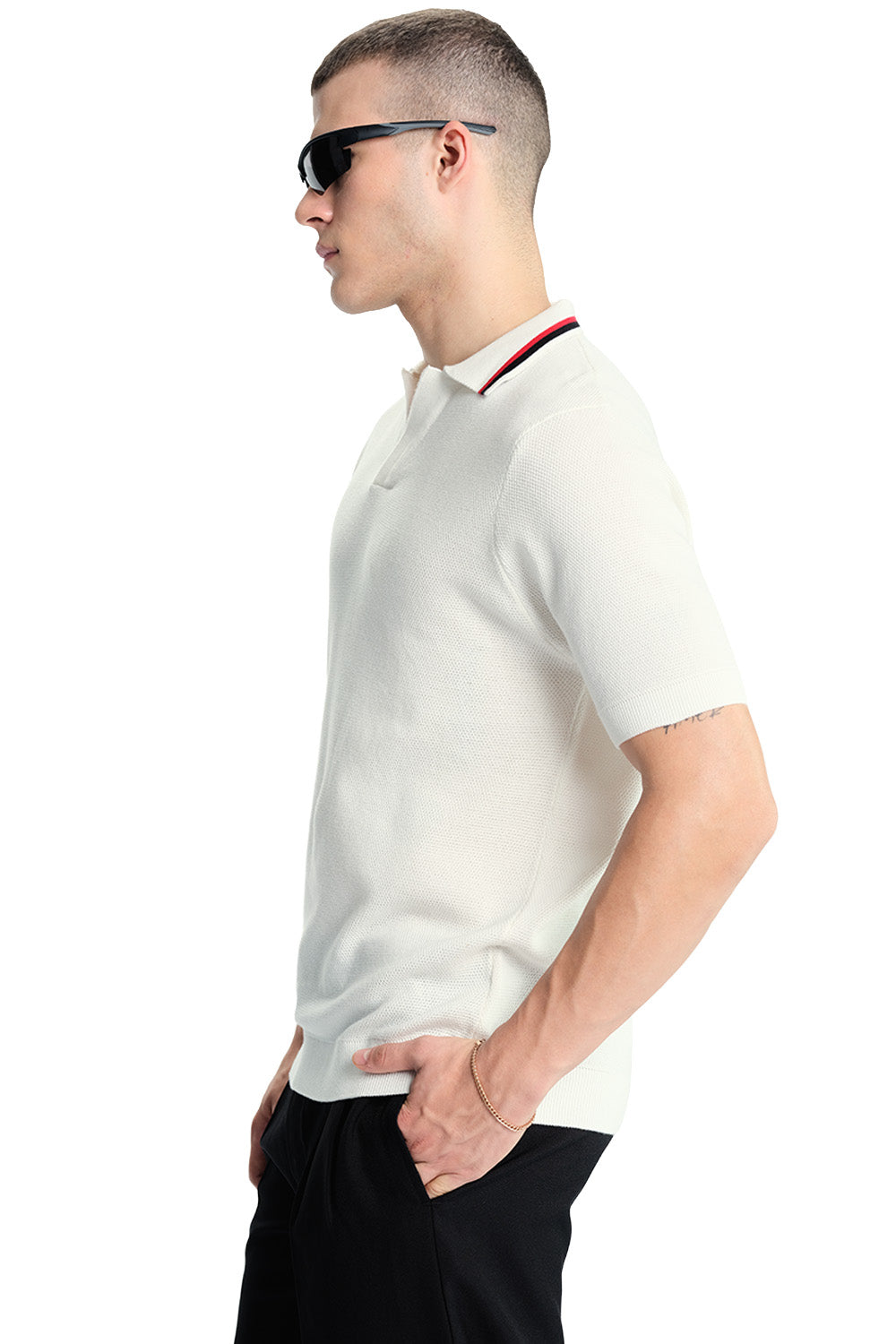 White Cable Knit Polo