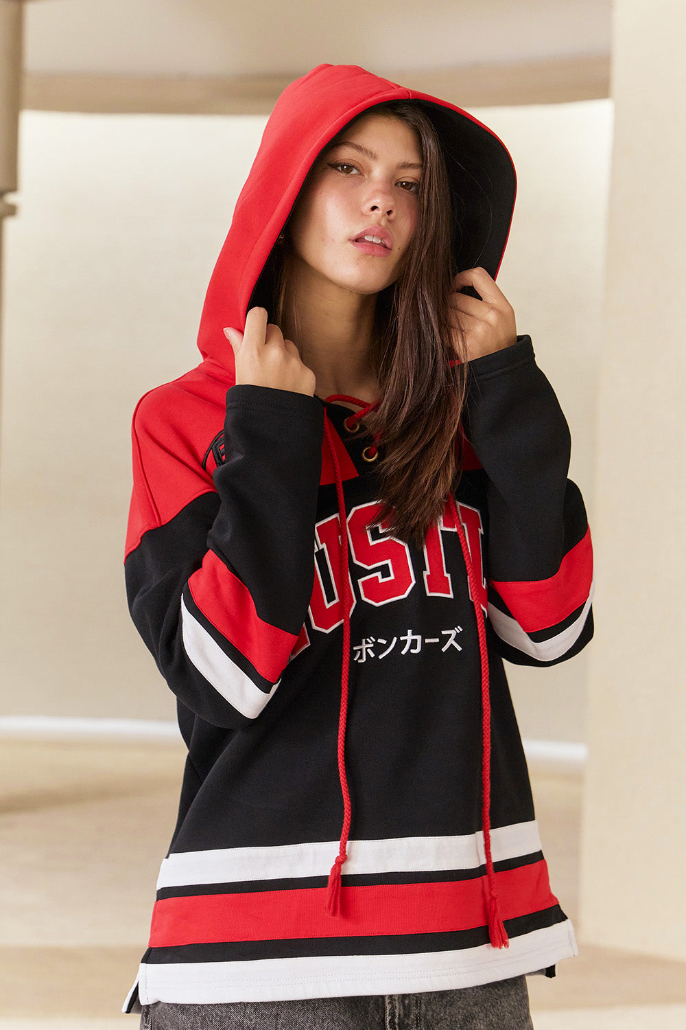 The model (Height 6’0″) is wearing size L