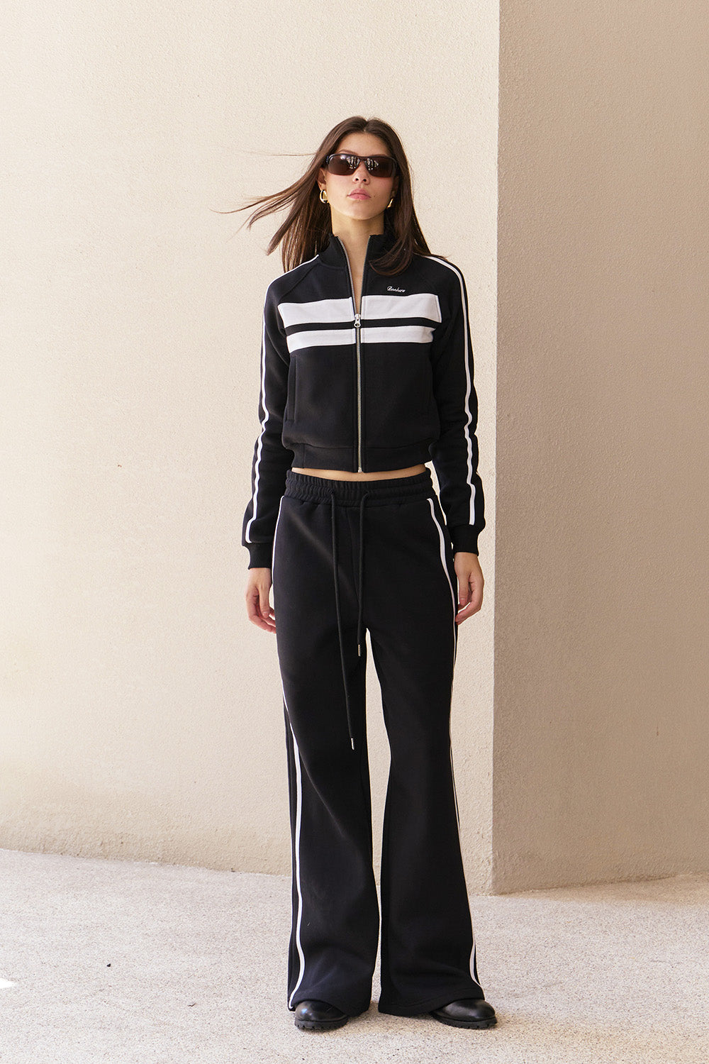The Black Dual Stripe Jacket for women is a versatile wardrobe essential that blends comfort, style, and functionality. Crafted from a premium blend of 60% cotton and 40% polyester, this jacket provides a soft, breathable feel while ensuring durability for long-lasting wear. Featuring a 340 GSM fabric weight, it offers lightweight warmth and structure, making it ideal for layering over tees, sweatshirts, or casual outfits. The classic black shade is complemented by stylish dual stripes, adding a sporty and contemporary touch to your everyday look. Designed with a relaxed fit and a functional front closure, this jacket ensures ease of wear and adjustable comfort. Perfect for lounging, travel, or casual outings, it delivers all-day comfort without compromising style. Durable, soft, and versatile, the Black Dual Stripe Jacket is a must-have layering essential for women seeking modern casual fashion.
