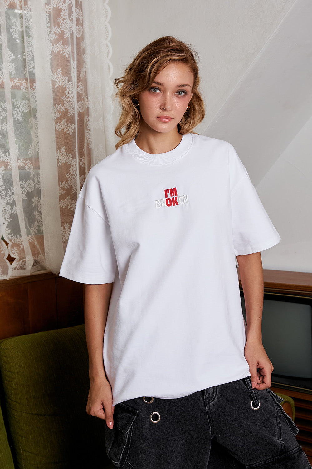 When the vibe is slightly cracked but you’re still functioning, the Broken Vibes White Oversized T shirt gets it better than your therapist. Made from 95 % cotton and 5 % spandex, it feels soft, breathable and has a comfortable stretch that keeps the oversized silhouette looking cute all day. The white shade keeps things fresh, while the Broken Vibes graphic hits with painfully relatable energy. With a GSM of 230, the fabric has a premium weight that holds shape without weighing you down. Style it with denim skirts, wide-leg pants or cargos for an effortless, laid-back outfit. Created for women who cope with humour, this tee mixes comfort, personality and subtle chaos in one perfect piece. Ideal for coffee runs, lazy days and every moment you’re pretending the vibe isn’t actually broken.