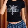 If you love vintage rock tees but prefer them in a modern silhouette, the Nirvana Grunge Angel Baby Tee hits the sweet spot. Crafted from 95 percent cotton and 5 percent spandex, it feels soft, stretchy and flattering, hugging comfortably without restricting movement. The black colour amplifies the grunge aesthetic and makes the angel artwork stand out with a darker, moodier tone. With a GSM of 210, the fabric is lightweight but holds shape well throughout the day. Pair it with oversized denim, plaid skirts or cargo pants for a classic alt-girl fit. Designed for women who love the blend of soft and edgy, this tee brings nostalgia and attitude in one easy piece.