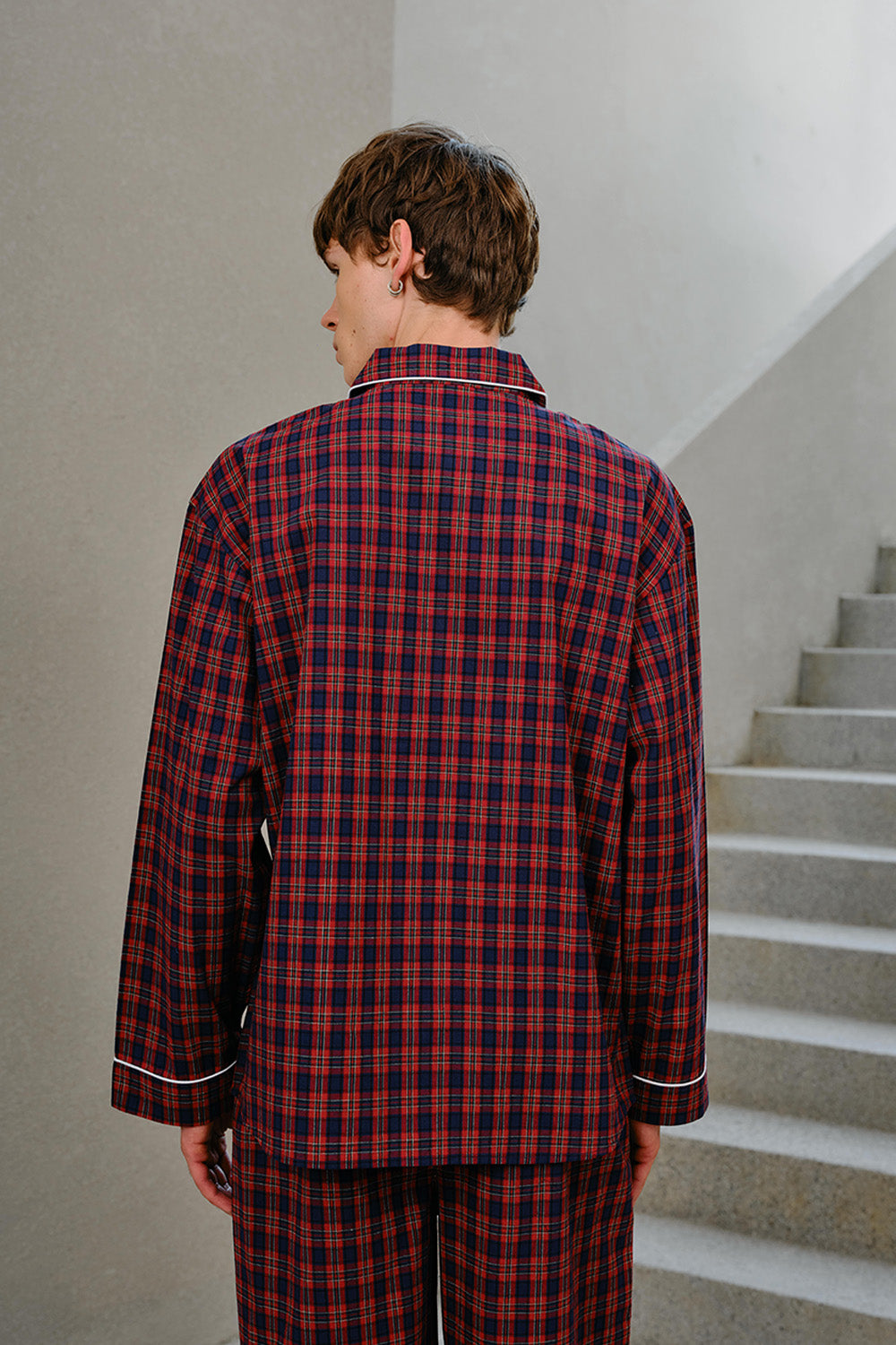 Sleepwear should feel easy, breathable and comfortable, and the Classic Crimson Plaid Pyjama Set checks all the right boxes. Crafted from 100% cotton, it offers a soft, lightweight feel that keeps you comfortable through the night. The red plaid design gives the set a traditional, cosy look that works well for lounging as much as sleeping. At 120 GSM, the fabric remains breathable and smooth, preventing overheating while still feeling snug. The relaxed fit allows freedom of movement, making it ideal for late nights and slow mornings alike. Designed for men who appreciate classic patterns and dependable comfort, this pyjama set is a simple essential for everyday downtime.