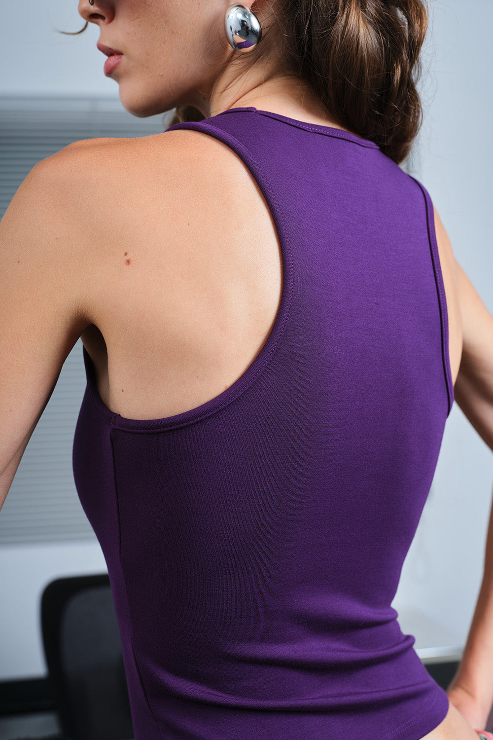 Add a vibrant touch to your wardrobe with the Purple Square Neck Tank, designed for women who value comfort, style, and a flattering fit. Crafted from a premium blend of 80% modal, 15% polyester, and 5% spandex, this tank is soft, breathable, and slightly stretchy, offering a form-fitting silhouette that moves comfortably with you. With a GSM of 400, the mid-weight fabric ensures durability while maintaining its shape for long-lasting wear. The square neckline creates a modern, elegant silhouette, making it perfect for casual outings, layering, or smart-casual occasions. The rich purple shade adds a pop of color and pairs effortlessly with jeans, skirts, or shorts for versatile styling options. Ideal for everyday wear or relaxed occasions, the Purple Square Neck Tank combines comfort, sophistication, and contemporary design, making it a must-have wardrobe essential for women seeking a stylish and versatile top.