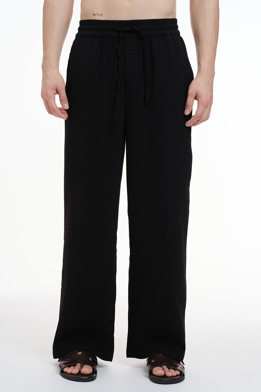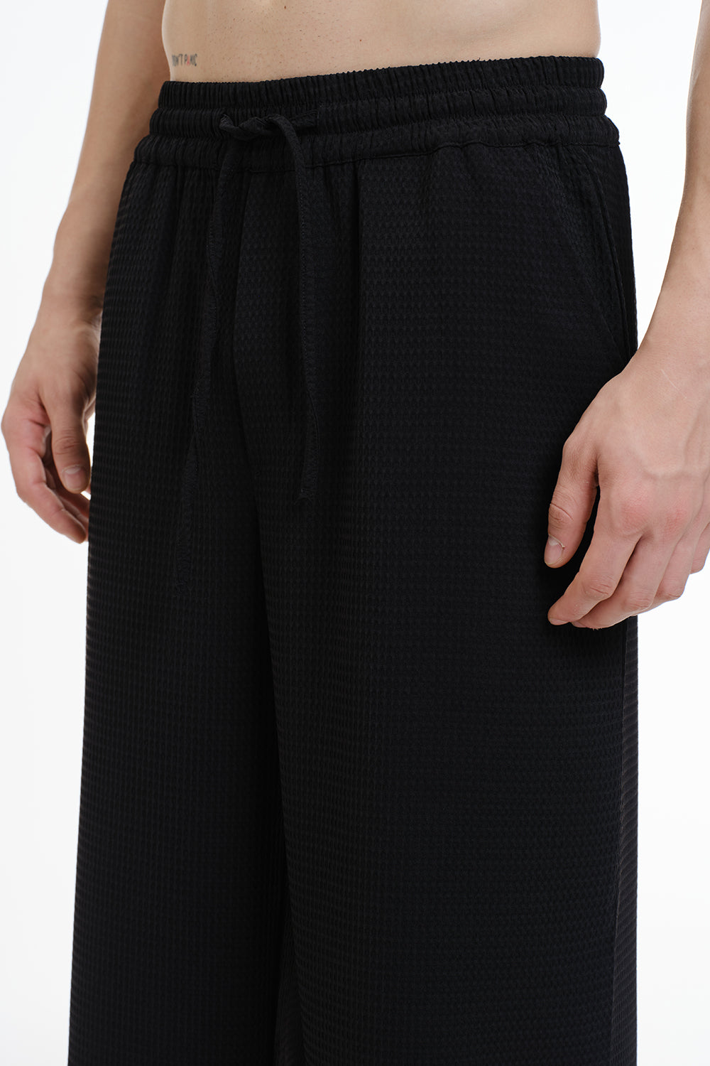 Solid Black Textured Pant