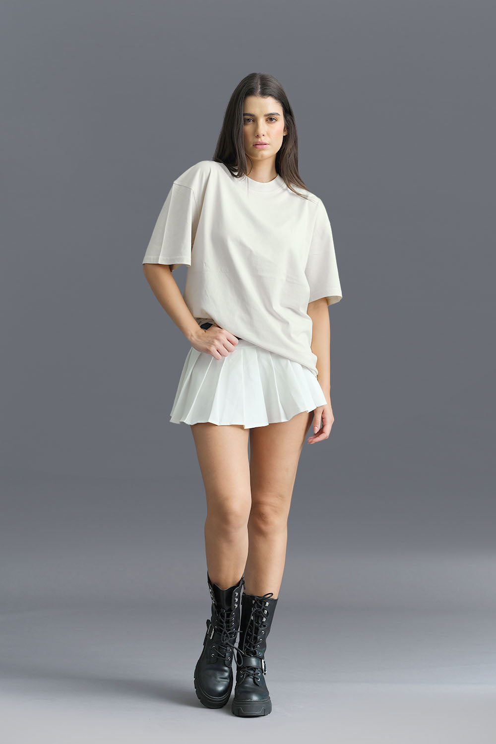 Solid Off White Soft Jersey Oversized T-shirt - BonkersCorner